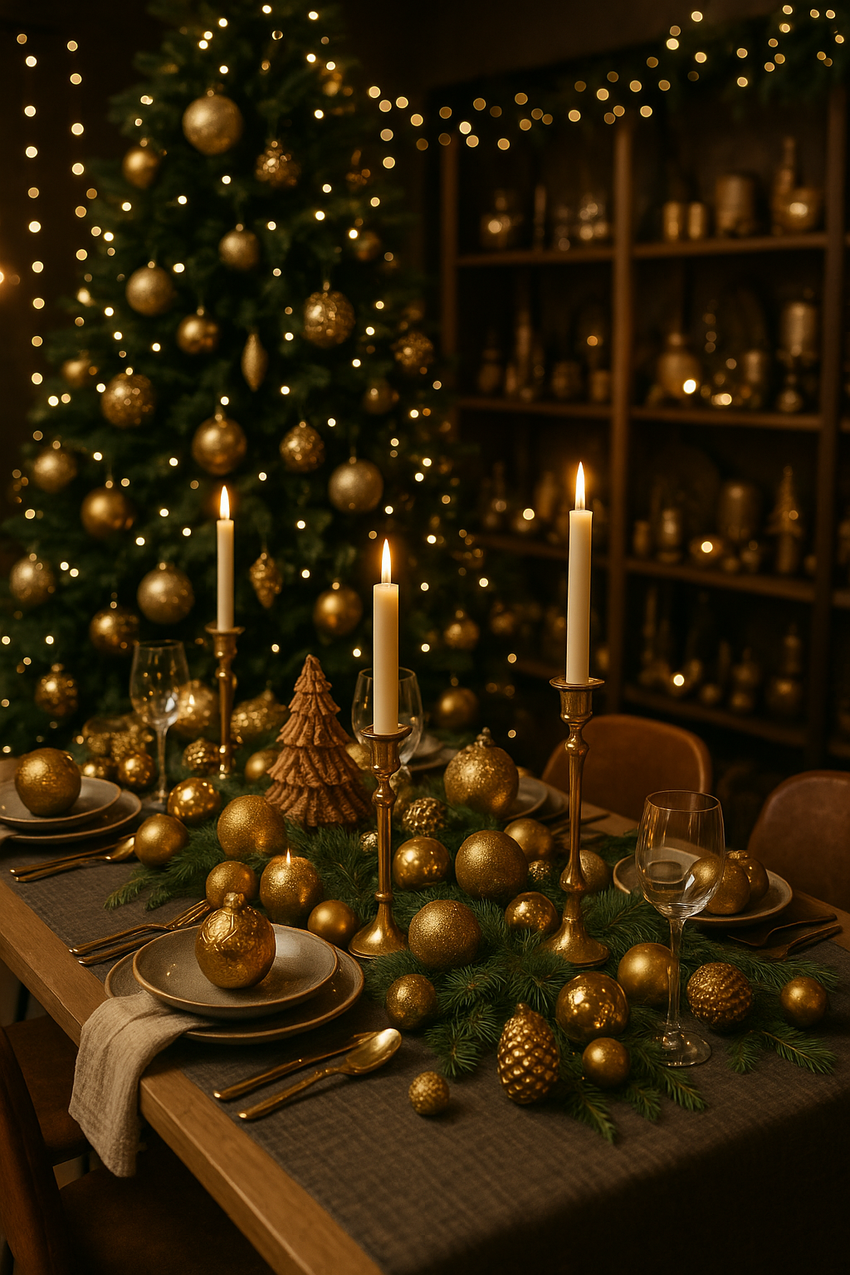 • Sfeervolle verlichting & natuurlijke details: warme LED-slingers, kaarslicht, dennentakken, houten ornamenten en handgemaakte accessoires brengen rust en authenticiteit.