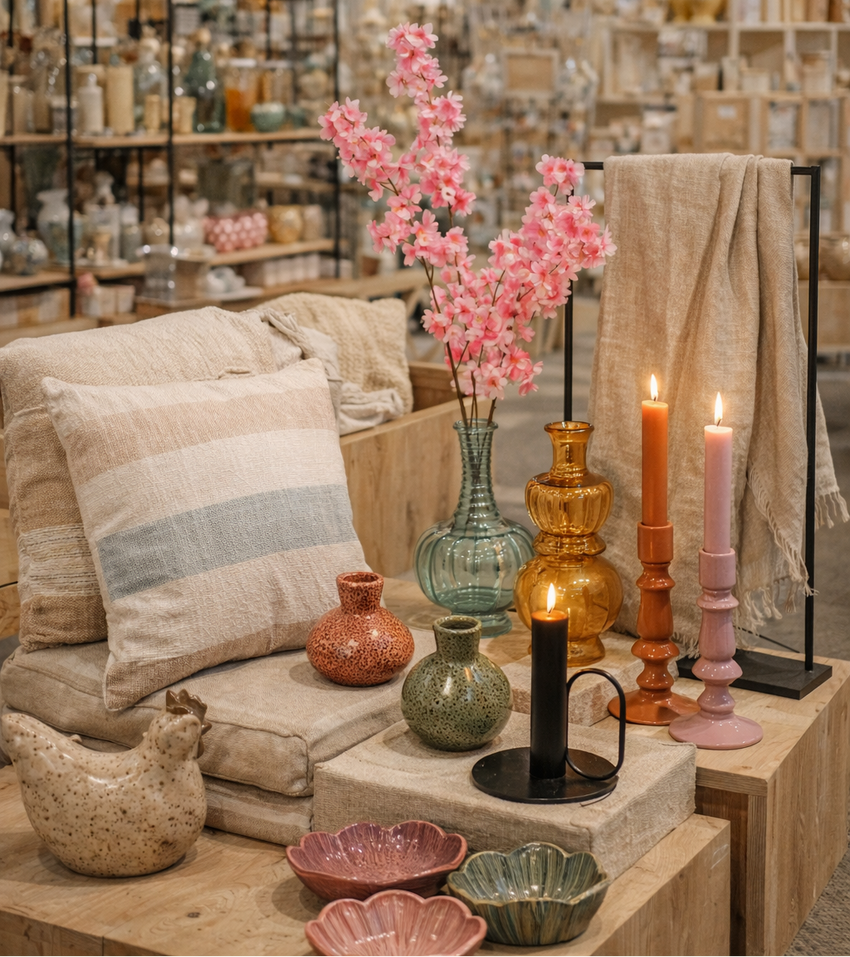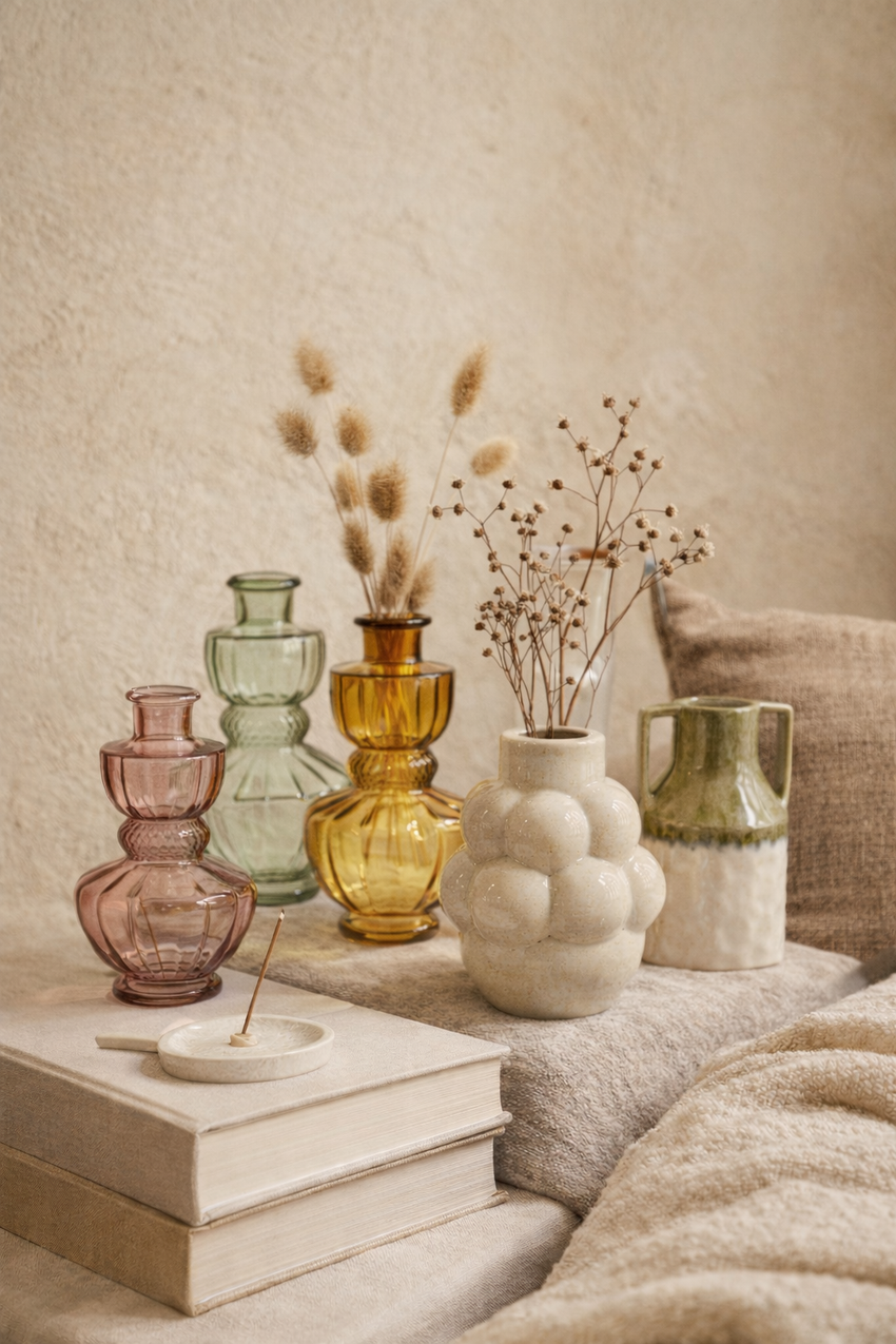 1. Organische Formen: Wählen Sie Accessoires mit weichen, runden Formen. Denken Sie an Vasen , Schalen und Kerzenständer, die Ruhe ausstrahlen.
