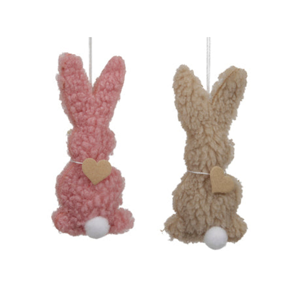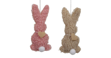 4 stuks fabric rabbits/hanging 2 ass. pink/beige 5.5x12 cm