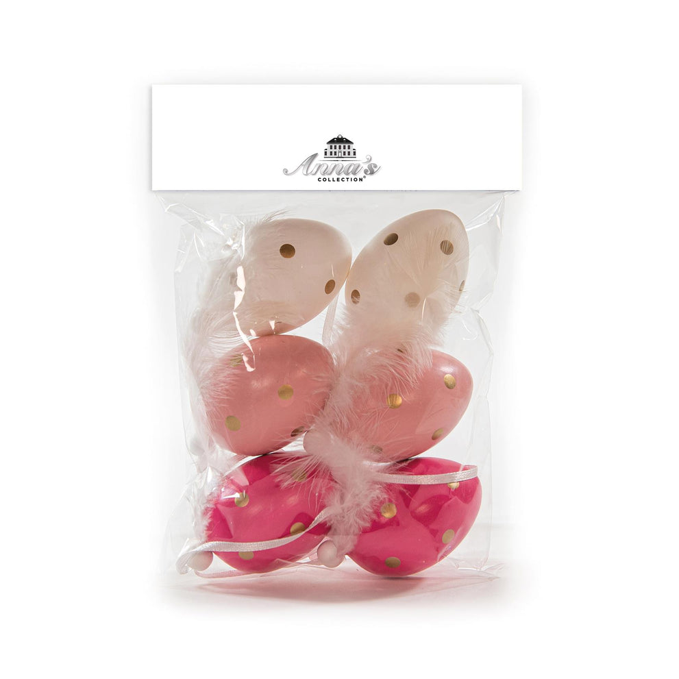 6 STÜCK EI MIT PUNKT 6CM WEISS/ROSA/HELLROSA IM BEUTEL