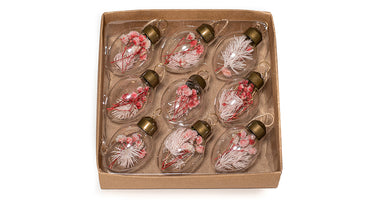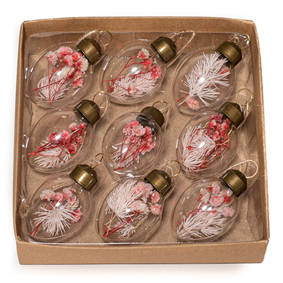 9 GLASEIER 3X4,5CM MIT GETROCKNETER BLUME ROSA / ANHÄNGER IN BASTELKARTON