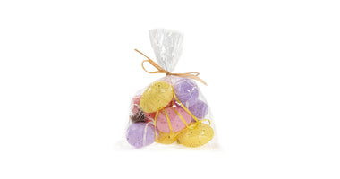 9 STÜCK EI 6CM GELB/ROSA/VIOLETT SORTIERT MIT FEDER IM BEUTEL