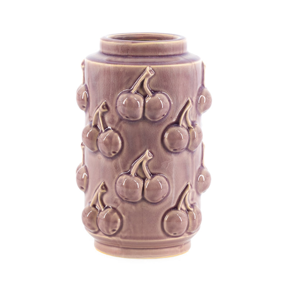 Aardewerk vaas cherries paars 14,5x14,5x22,5cm
