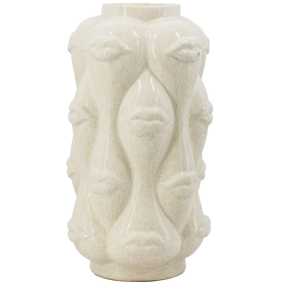 Aardewerk vaas lips beige 19x19x35cm