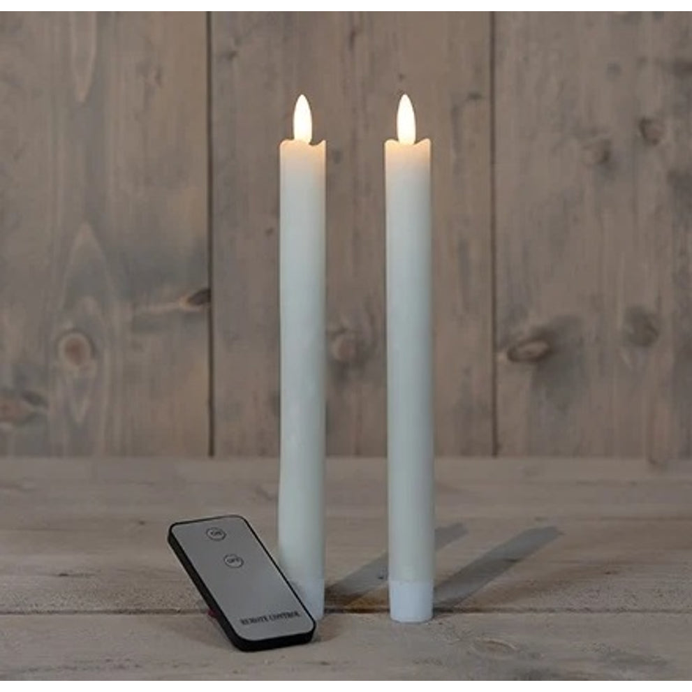 ABENDESSEN KERZE B.O. 2PCS ELFENBEIN RUSTIKALEN WACHS 23CM 3D DOCHT MIT FERNBEDIENUNG 2X2AA