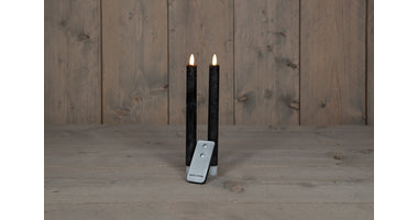 DINNERKERZE B.O. 2PCS SCHWARZES RUSTIKALES WACHS 23CM 3D DOCHT MIT FERNBEDIENUNG 2X2AA