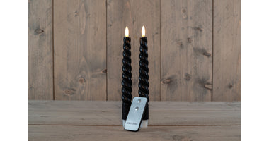 DINNER CANDLE B.O. 2PCS BLACK SWIRL WAX 23CM 3D DOCHT MIT FERNBEDIENUNG 2X2AAA