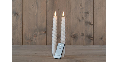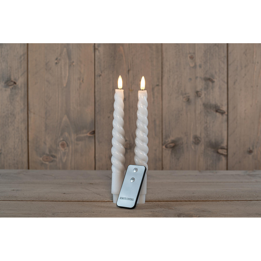 DINNER KERZE B.O. 2PCS WEISS SWIRL WACHS 23CM 3D DOCHT MIT FERNBEDIENUNG 2X2AAA