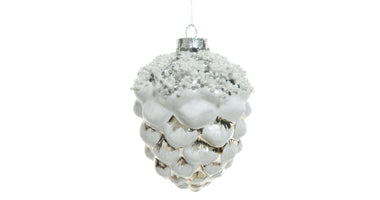 Anhänger Tannenzapfen Glas silber weiß finish H7.5 D9cm