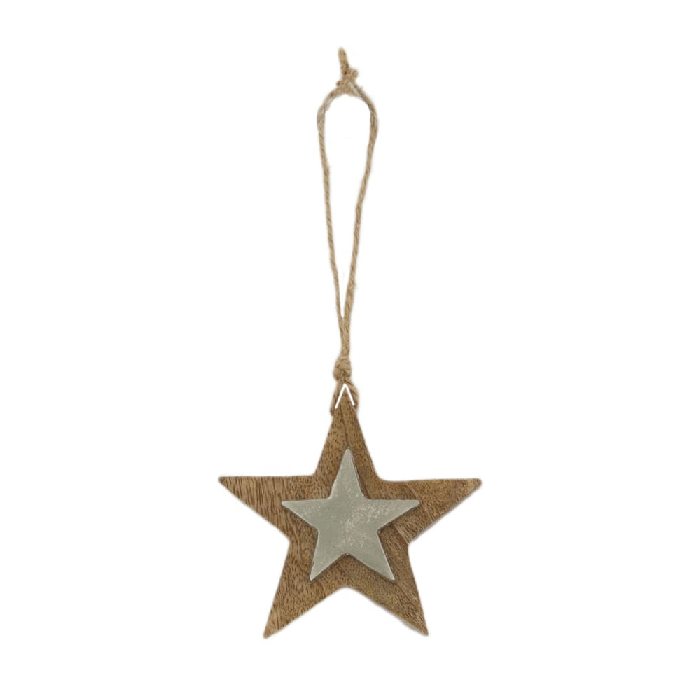 Kleiderbügel Stern Mangoholz 9x9x1,5cm Silber