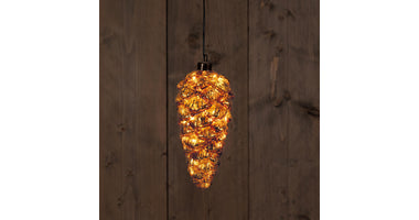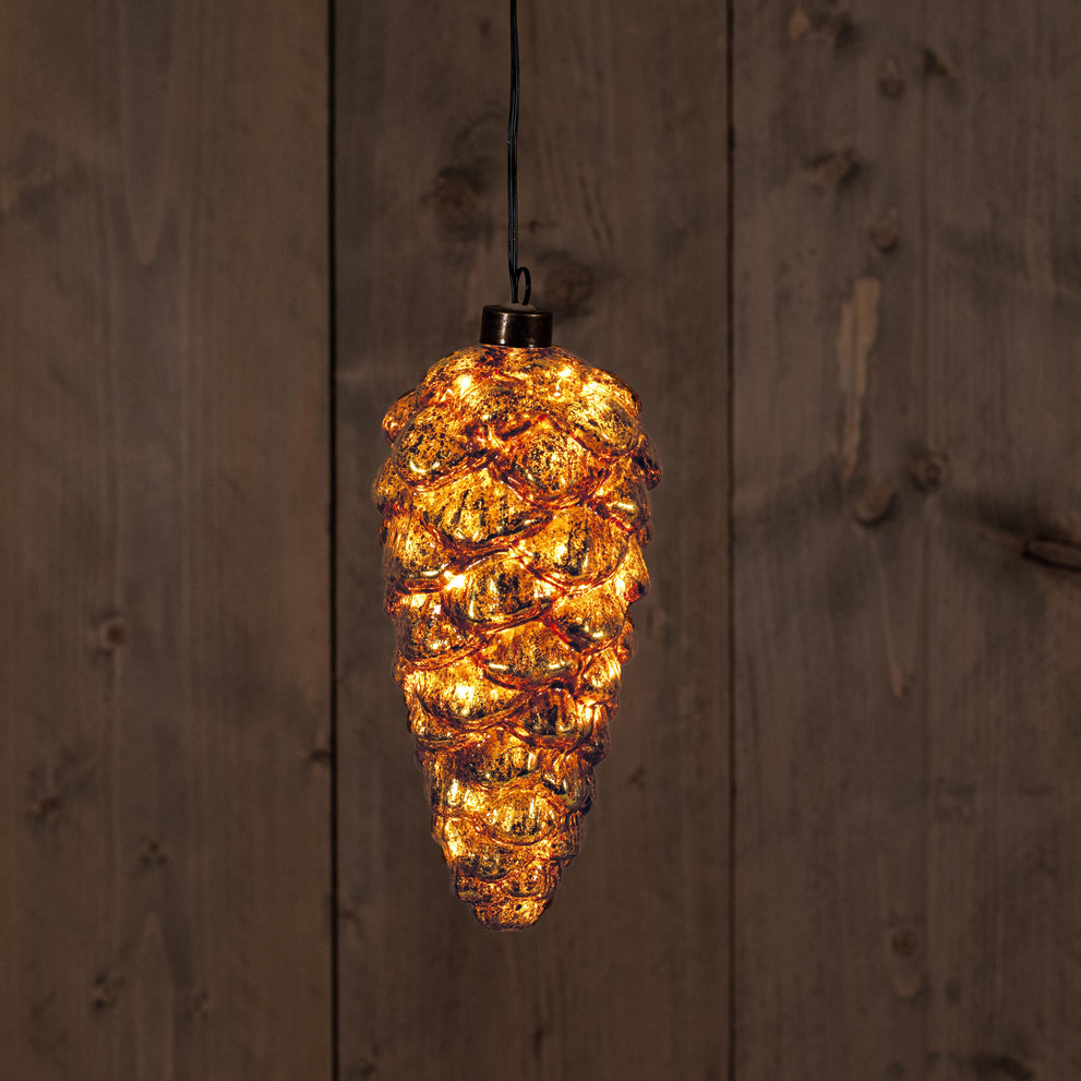 B.O. GLAS TANNENZAPFEN ANTIK GOLD 20CM /15 LED KLASSISCH WARM - 2XAAA