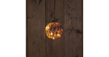B.O. GLASKUGEL ANTIK GOLD 12CM / 10LED KLASSISCH WARM - 2XAAA