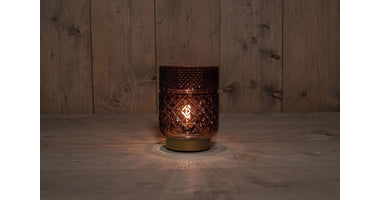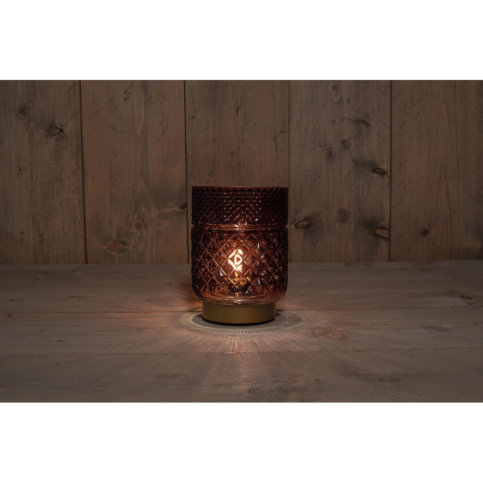 B.O. GLAS LAMPE BORDEAUX MIT GOLD FUSS 12X17,5CM - 2XAAA