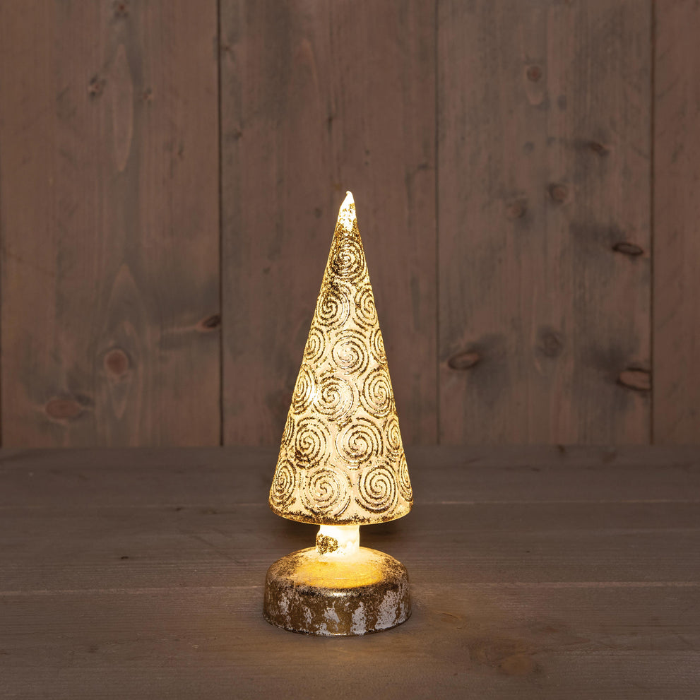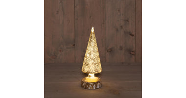 B.O. GLAS BAUM WEISS-GOLD 9X27CM / 10LED CLASSIC WARM - 3XAA