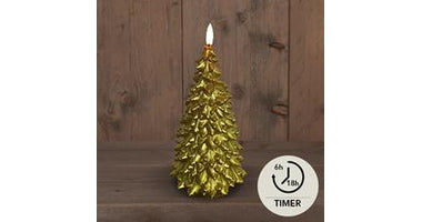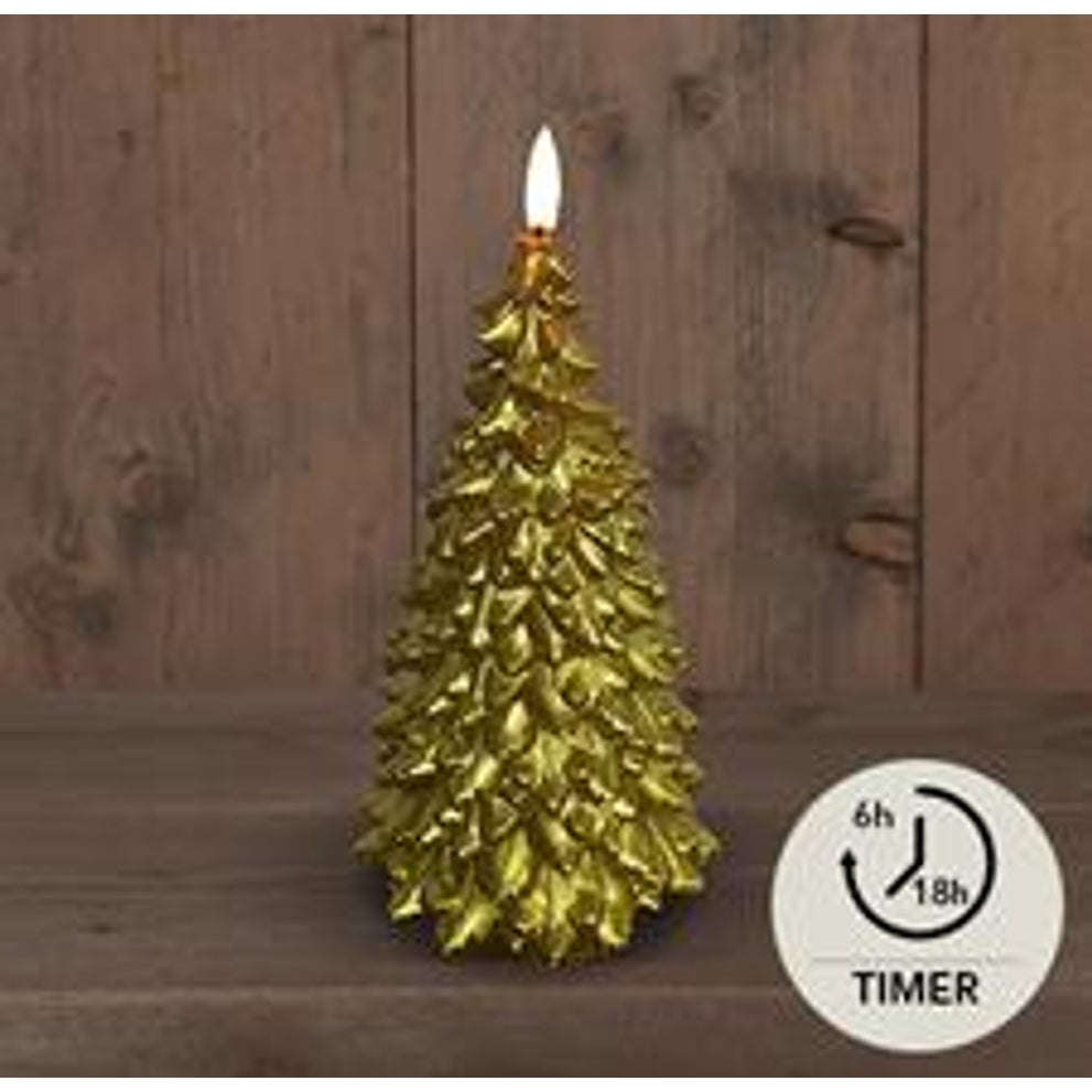 BOT 3D LONT GOLD WEIHNACHTSBAUMKERZE RUSTIKAL WACHS 9,5X20CM 2AAA / TIMER