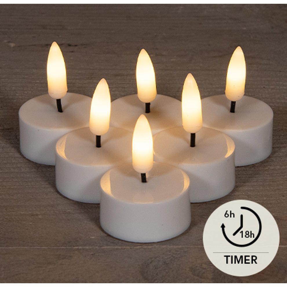 B.O.T. 6PCS 3D FLAMME LED TEELICHT WARM WEISS FLAMME EFFEKT MIT TIMER