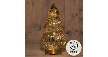 B.O.T. GLASBAUM BERNSTEIN 10L MIT GOLDSOCKEL 15X28,5CM 3XAA MIT ZEITSCHALTUHR
