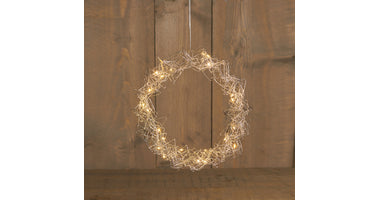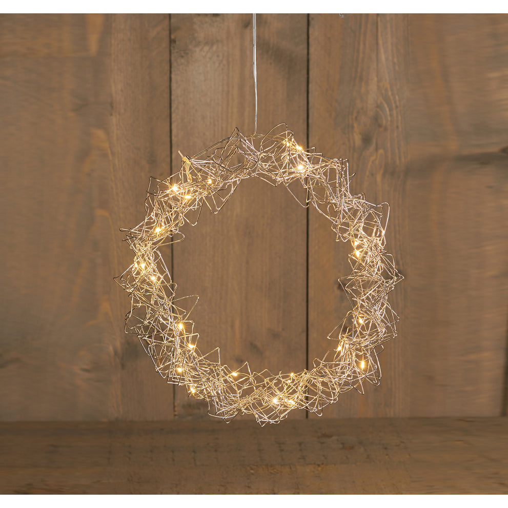 B.O.T. METAL WREATH SILVER DIA 30CM 25LED WARM WHITE - 50CM