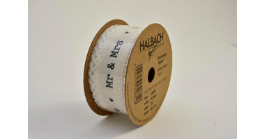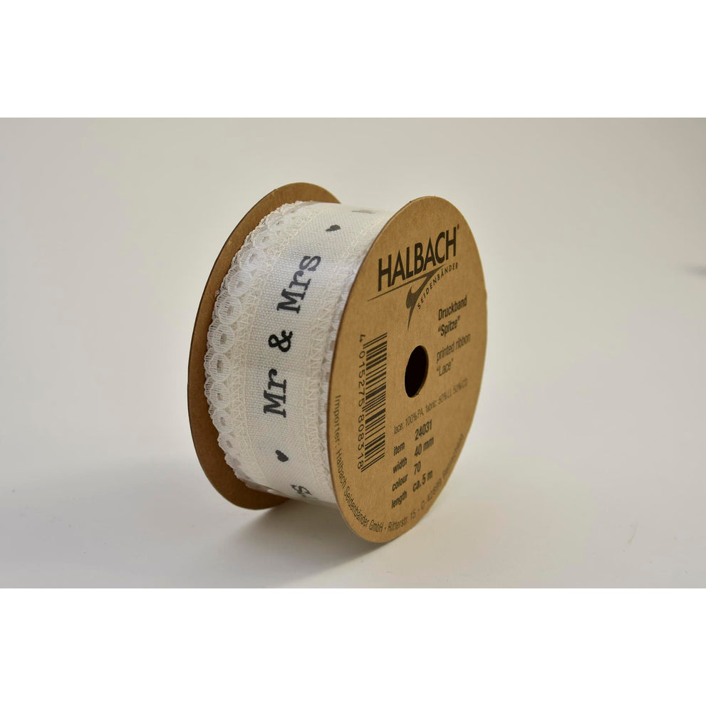 Band mit Spitzenbesatz Mr & Mrs 40 mm creme