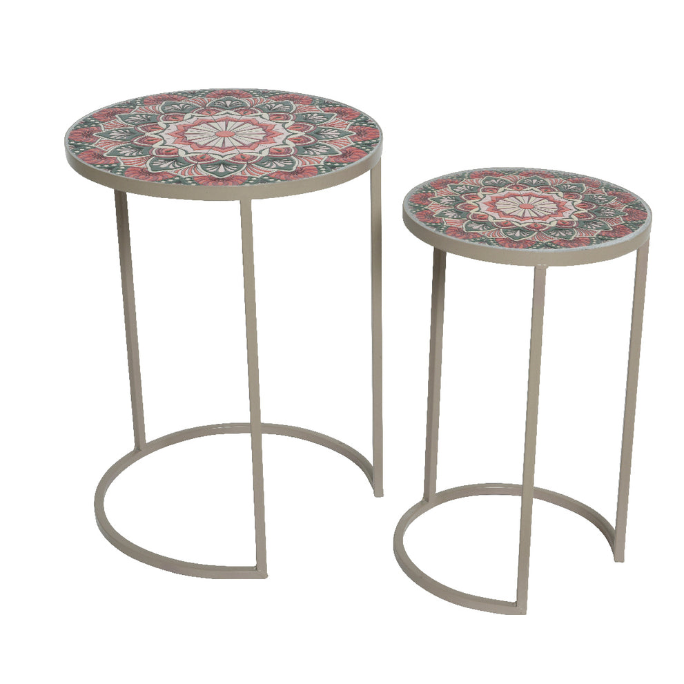 Beistelltisch narbonne Eisen im Freien Taupe Mosaik H54 D40cm