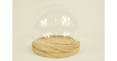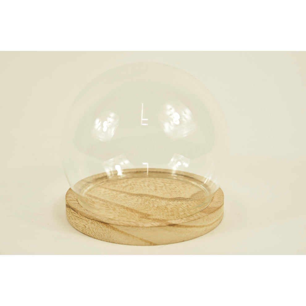 GLASBALLEN-GLOCKE D10X9H AUF HOLZSOCKEL NATUR