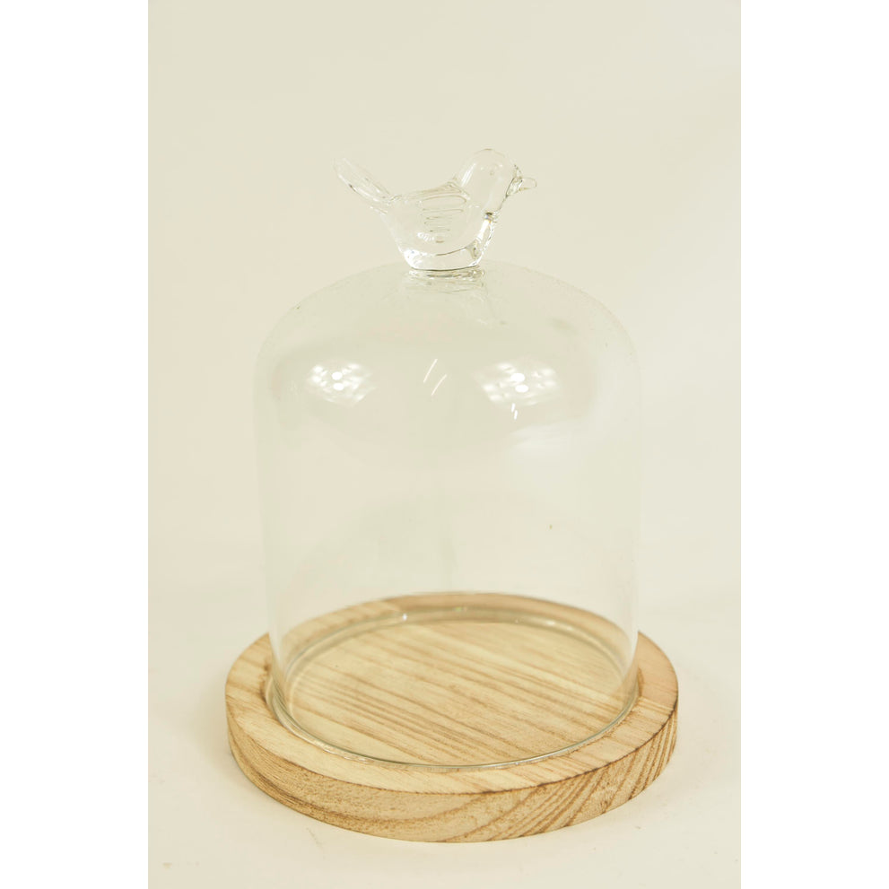 GLASVOGEL BELL D10X13,5H AUF HOLZSOCKEL NATUR