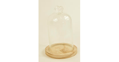 GLASHERZ BELL D13X19H AUF HOLZSOCKEL NATUR