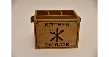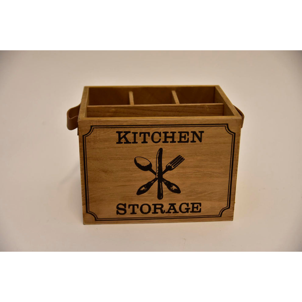 Holzbesteckkasten "Küchenaufbewahrung" Ledergriff 17x12,5x12,5c