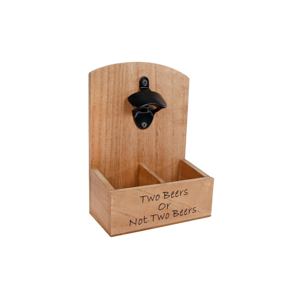 Bierhalter/Öffner "Zwei Biere" nasses Holz 16x9x22cm