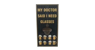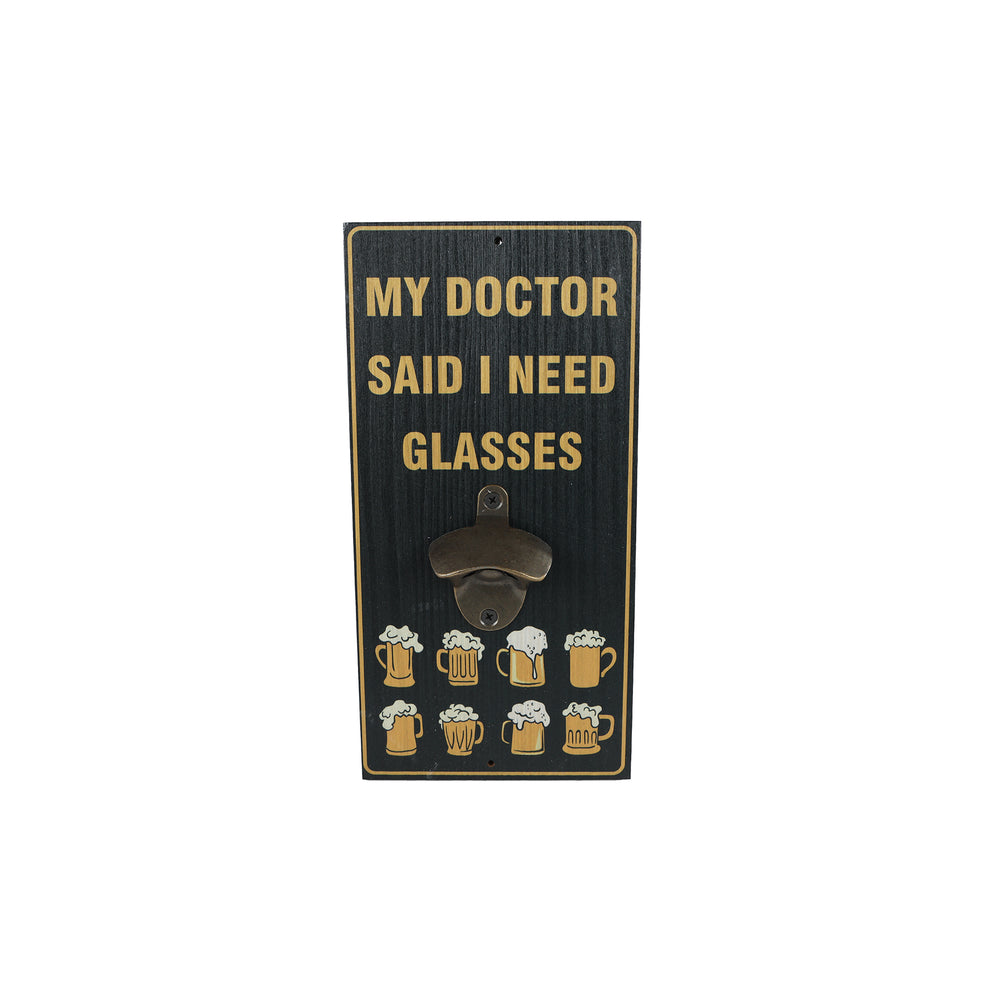 Bieropener "My Doctor" zwart hout/metaal 30x15x5cm