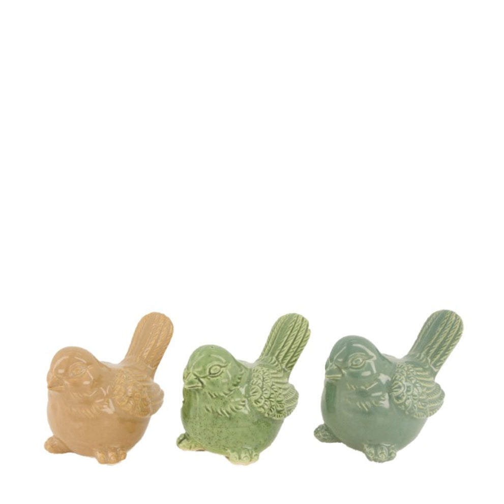 Vogel Keramik 13.5x8x9cm 3 sortiert grün mix