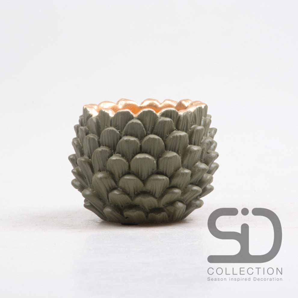 BLOEMPOT DENNENAPPEL CEMENT 11.5X11.5X8.8 CM OLIJFGROEN