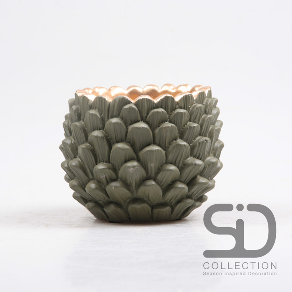 BLOEMPOT DENNENAPPEL CEMENT 14X14X11 CM OLIJFGROEN