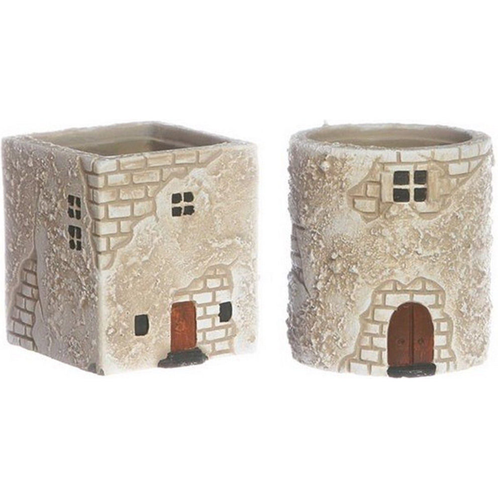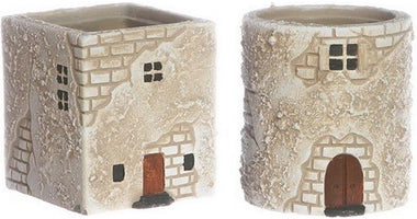 Blumentopf mediterranes Häuschen, H 8,5 cm, rund/quadratisch, 2er-Set