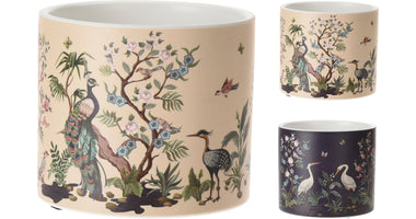 KERAMIK BLUMENTOPF ''VÖGEL'' 2 ASSORIT D13 H12CM