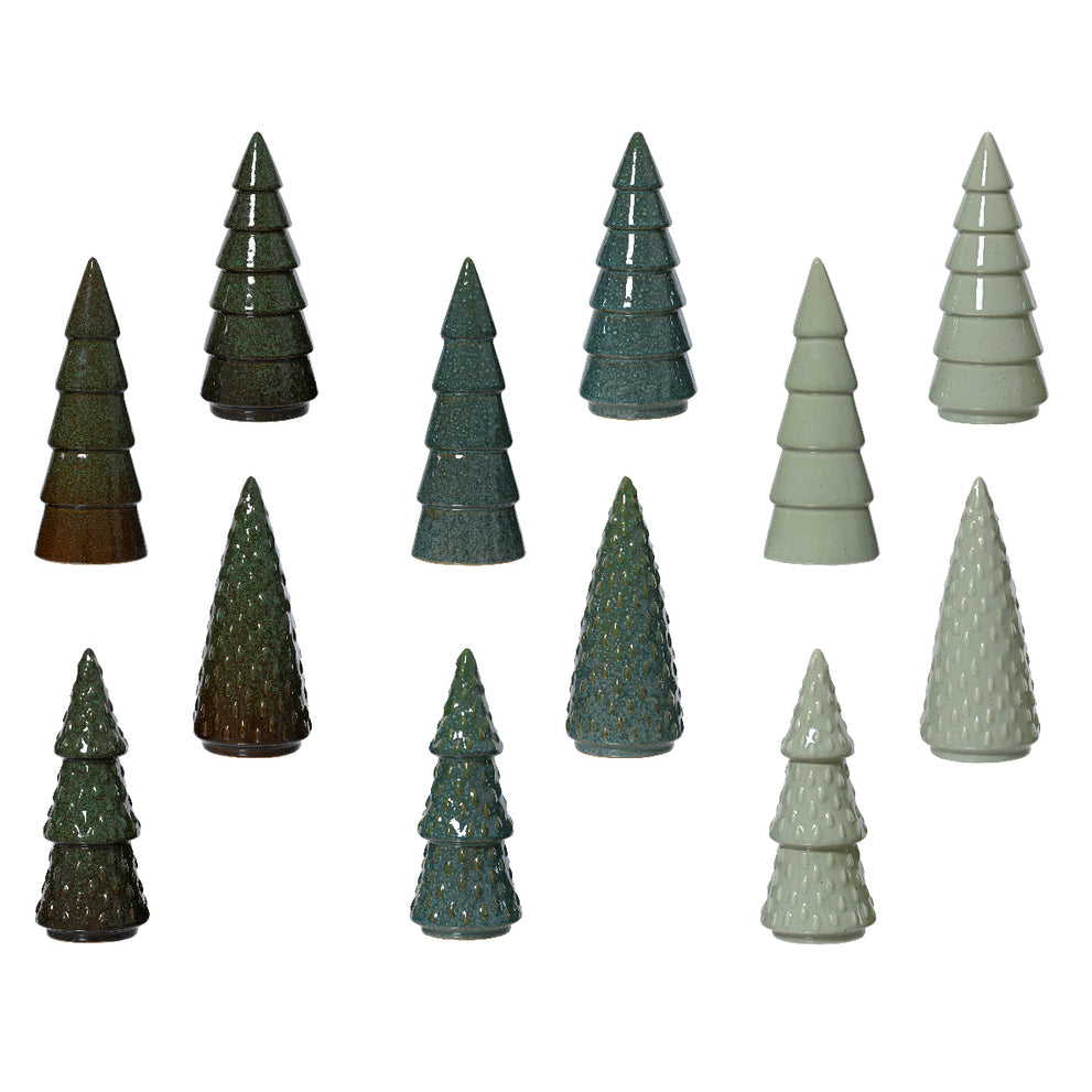 Baum aus Porzellan, 12er-Set, verschiedene Farben: Khaki/Türkis/Grün, D9 H21cm