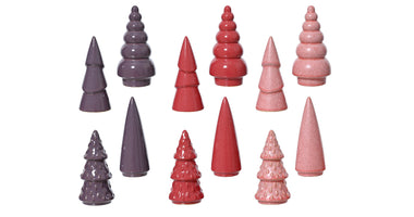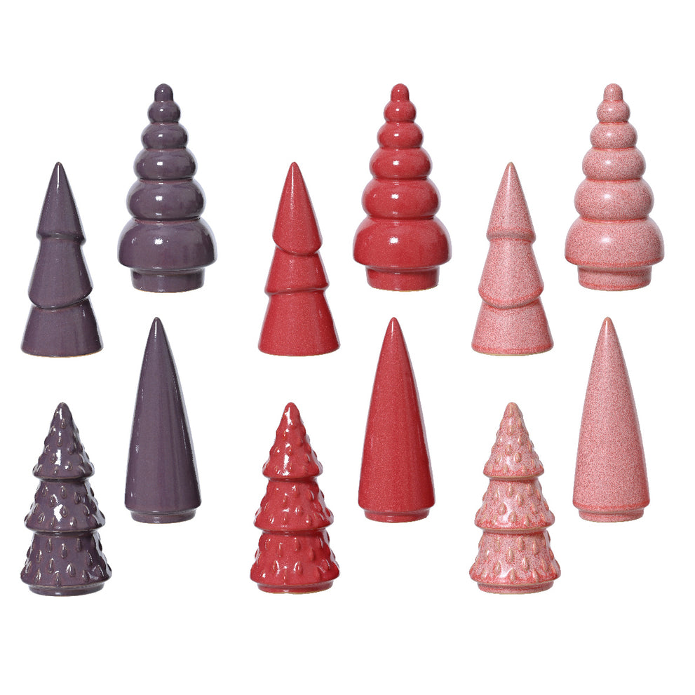 Baum aus Porzellan, 12er-Sortiment, rosa/rot/lila, D8 H16cm