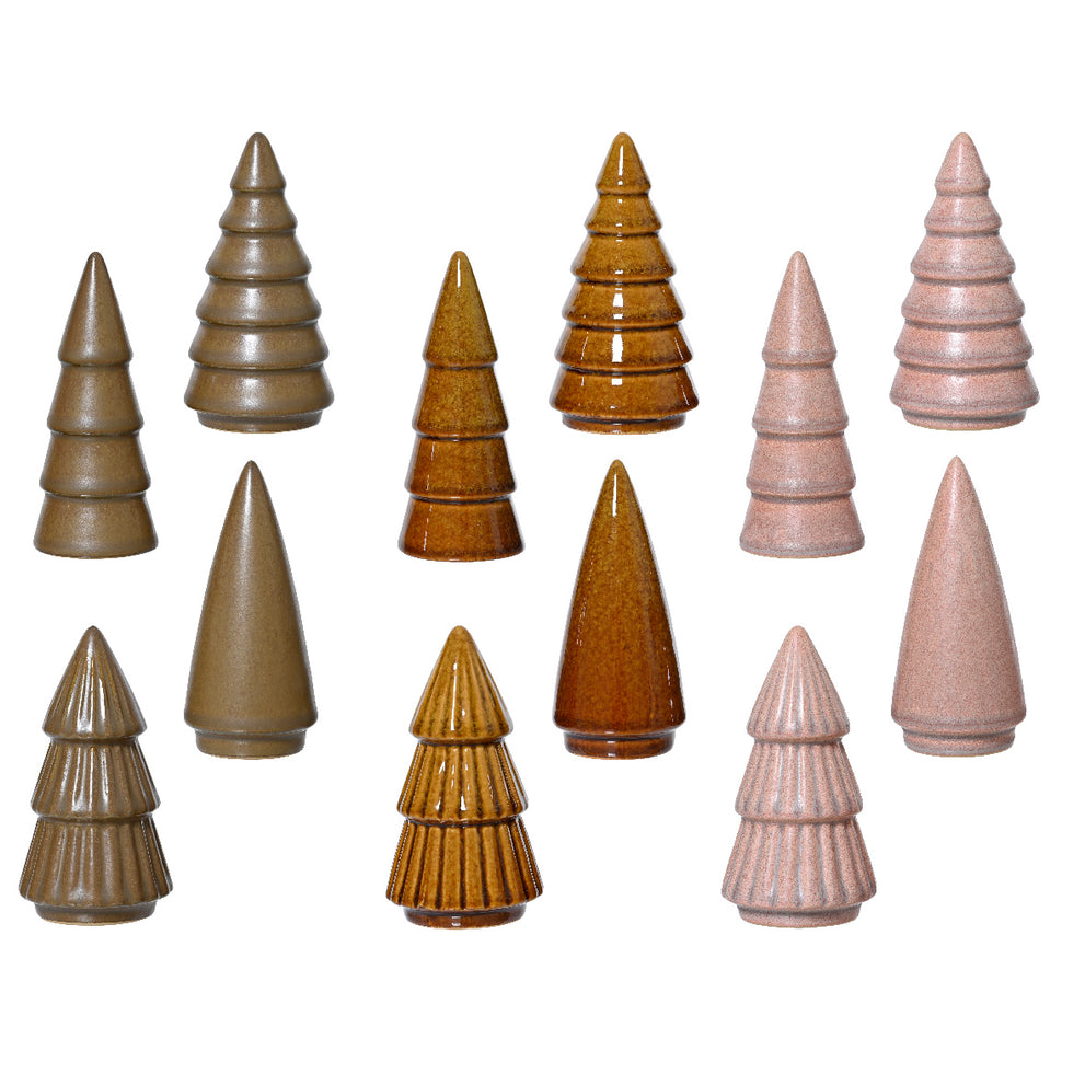 Baum aus Porzellan, 12er-Set, rosa/taupe/terracotta, D5 H10cm