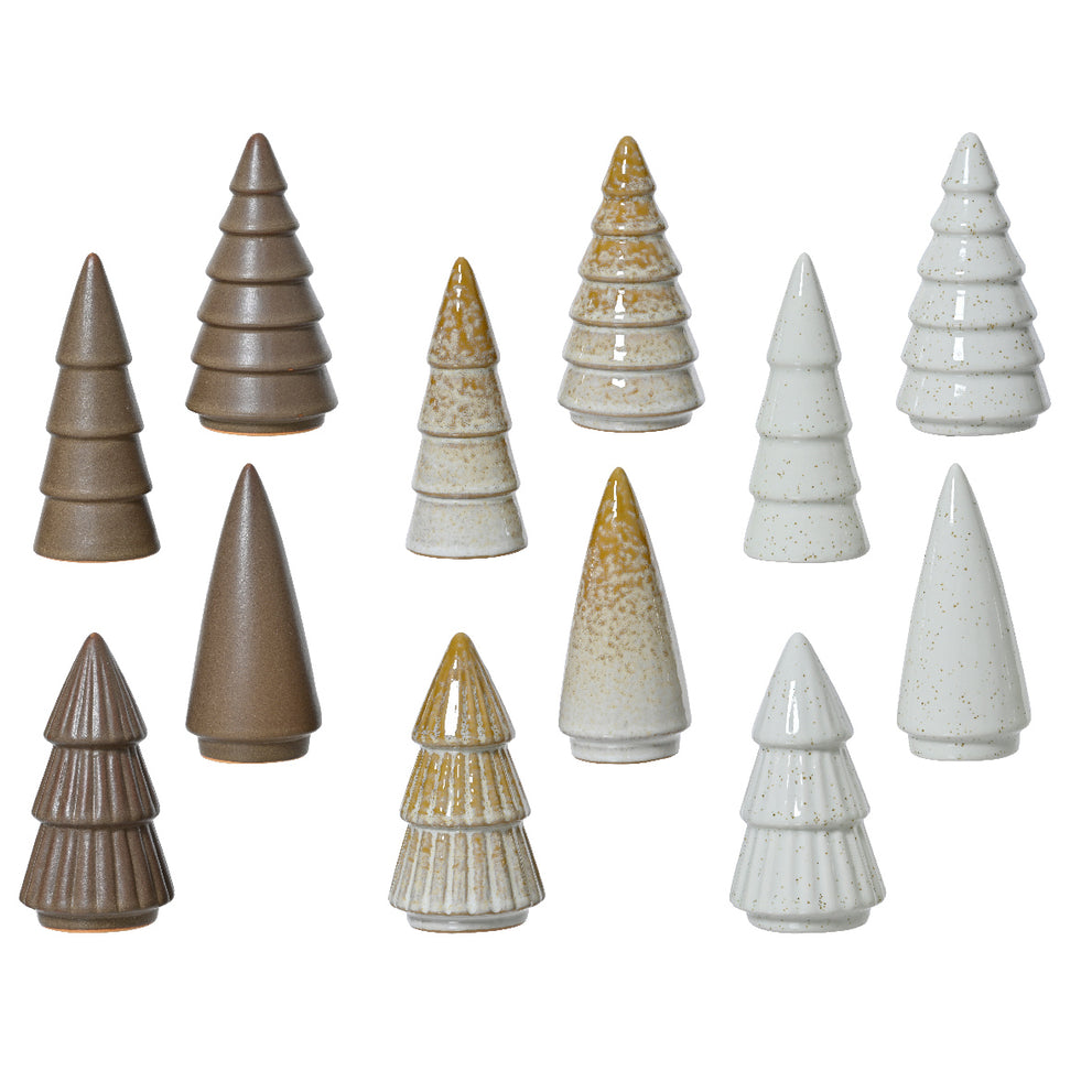 Baum aus Porzellan, 12er-Set, weiß/creme/braun, D5 H10cm