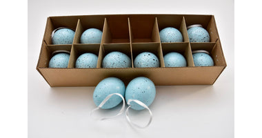 Schachtel mit 12 Hühnereiern auf Schleife Blau