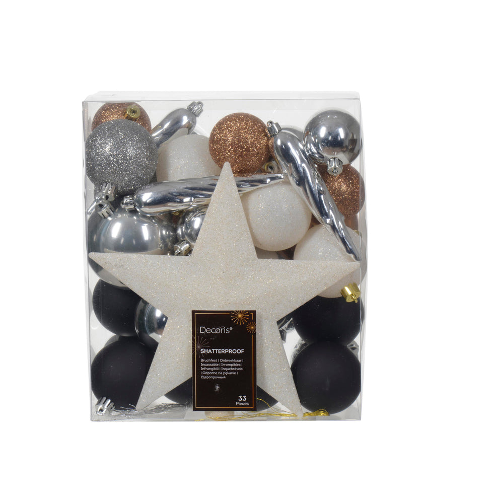 Schachtel a 33 Weihnachtskugeln Kunststoff Mix sortiert blau D.8cm