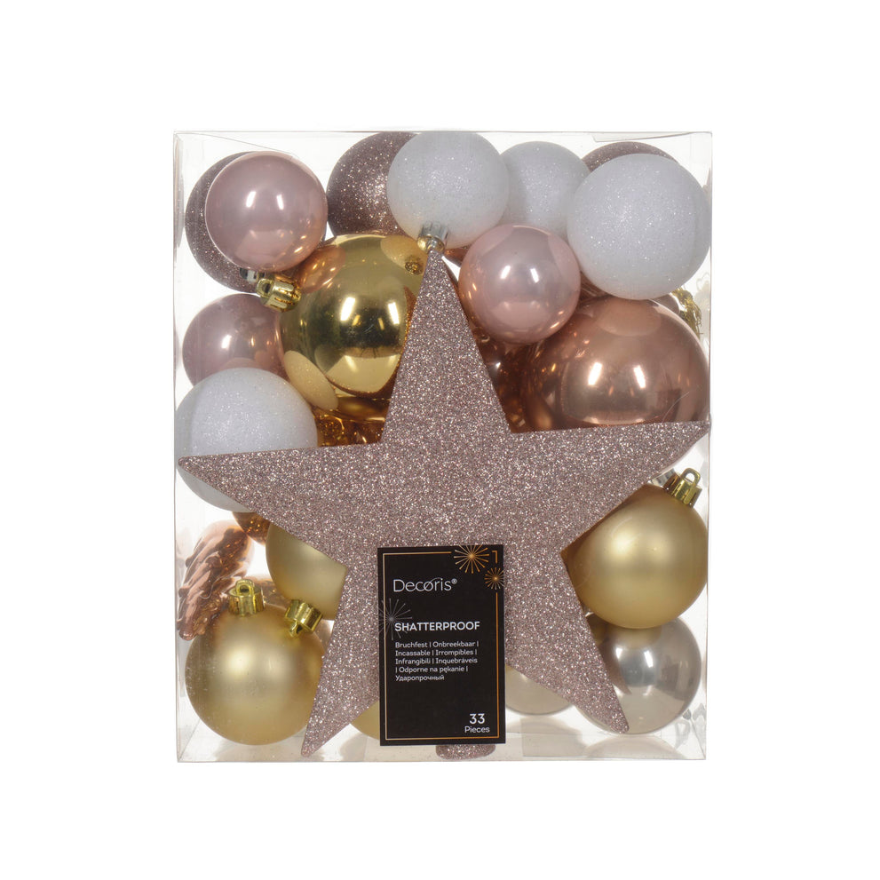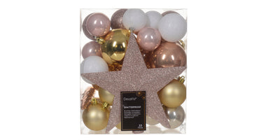 Schachtel a 33 Weihnachtskugeln Kunststoff-Mix sortiert rosa D.8cm