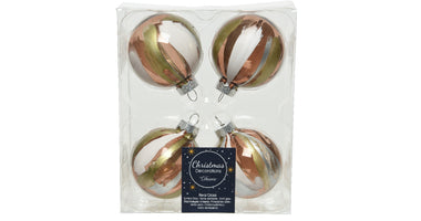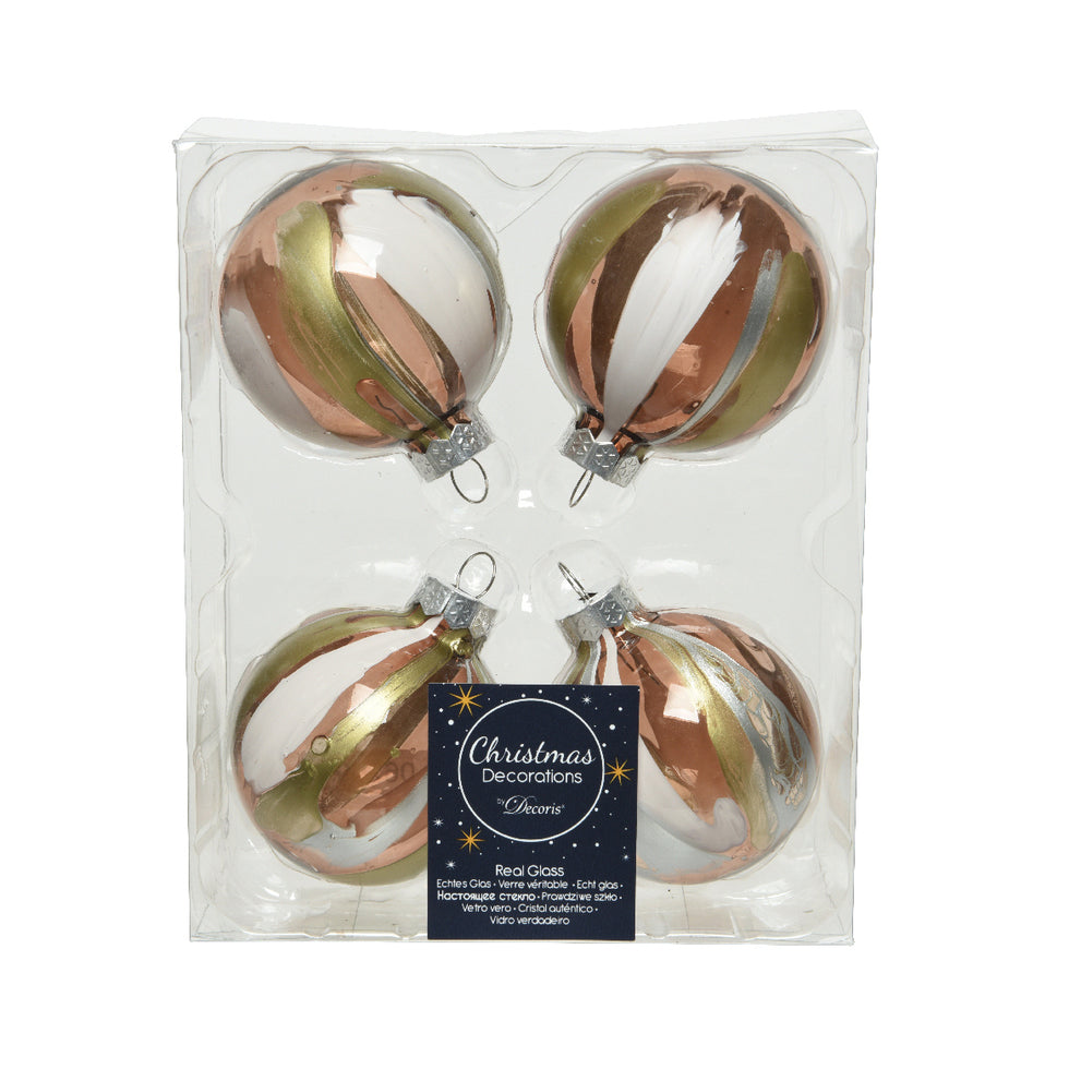Schachtel mit 4 Weihnachtskugeln Glas Transp. Marmor 6cm - Walnuss-Effekt