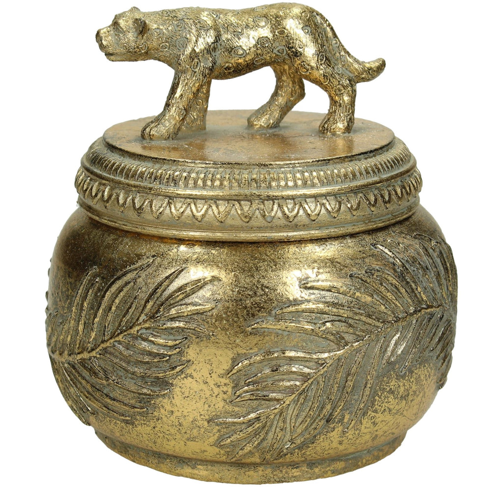 Schachtel Leopard Polyresin Gold 11.5x11.5x12cm