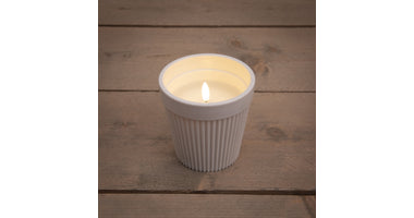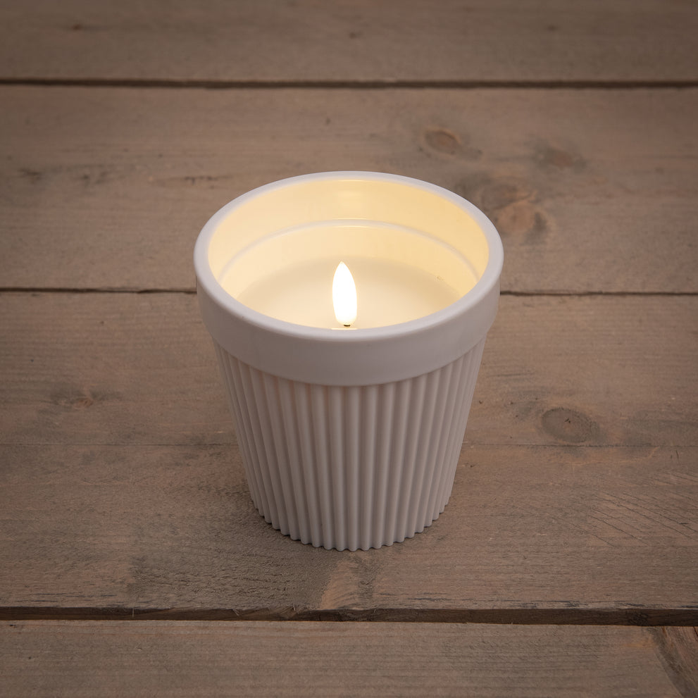 AUSSENKERZE IM TOPF 3D-FLAMME KUNSTSTOFF 11X11X11CM WEISS