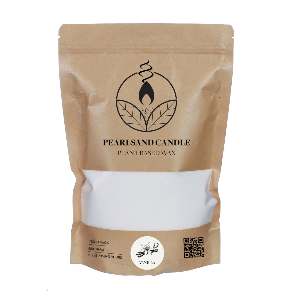 Duftkerze "Burning Sand" im 400 Gramm Kraftpapierbeutel, Vanilleduft.