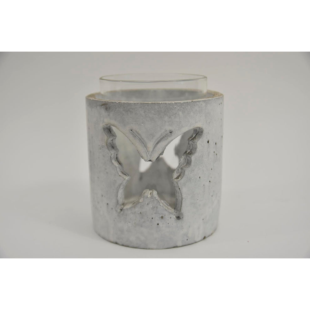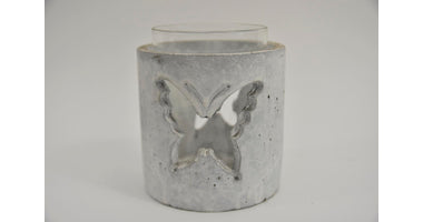 Kerze hldr. mit Schmetterling weiß D11.5H11.5cm