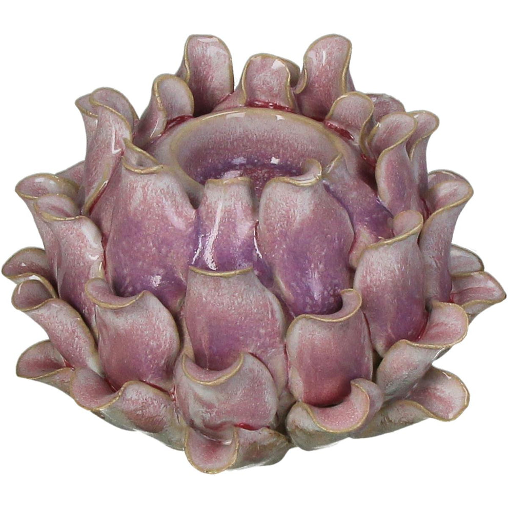 Kerzenhalter Blume Steingut Rosa 14,5x14,5x10,5cm