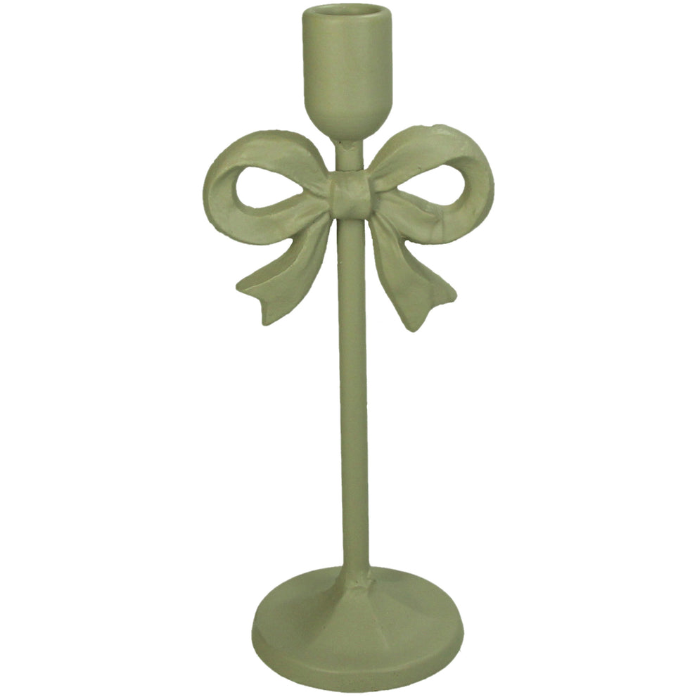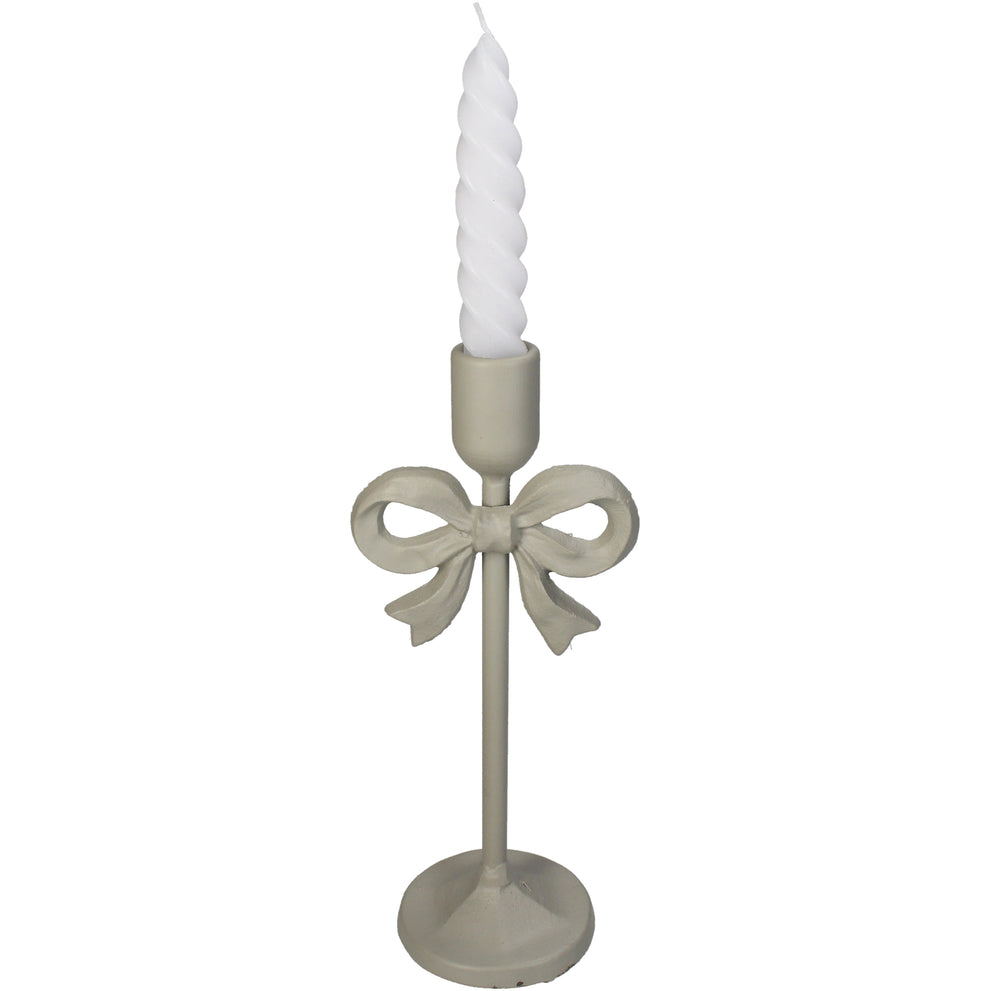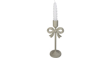Candle Stick Bow Metal Ivory 10.5x8.5x25.5cm