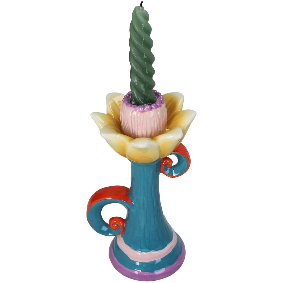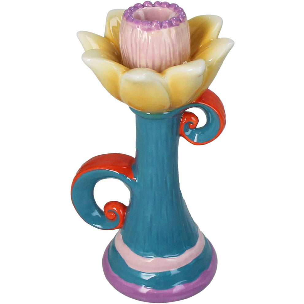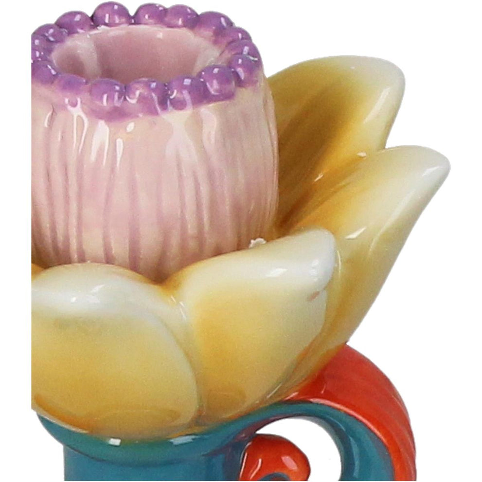 Kerzenhalter Blumen Steingut Mehrfarbig 12x11,5x21,5cm
